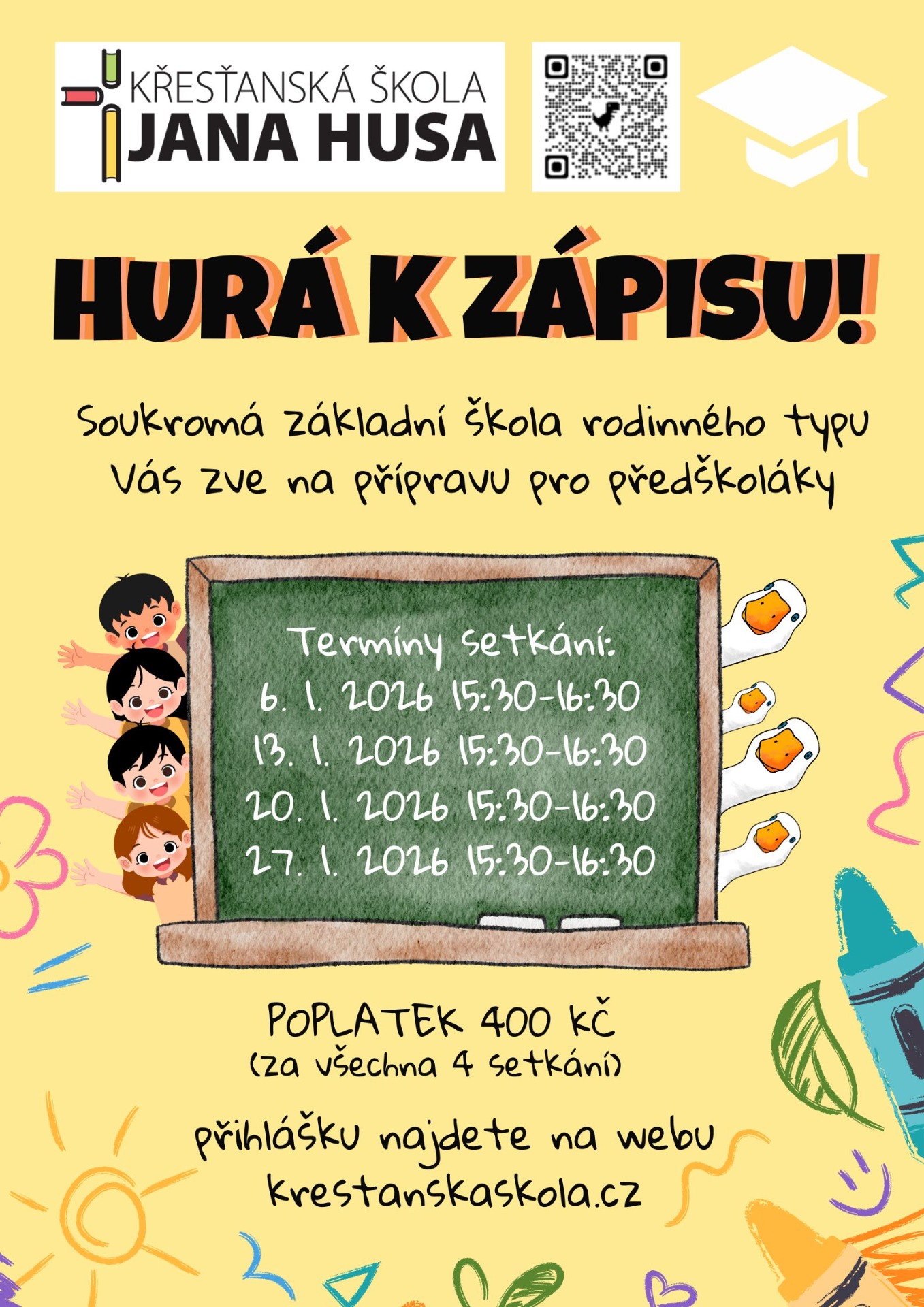 Jsme soukromá křesťanská mateřská školka, která funguje paralelně se Základní školou Jana Husa.